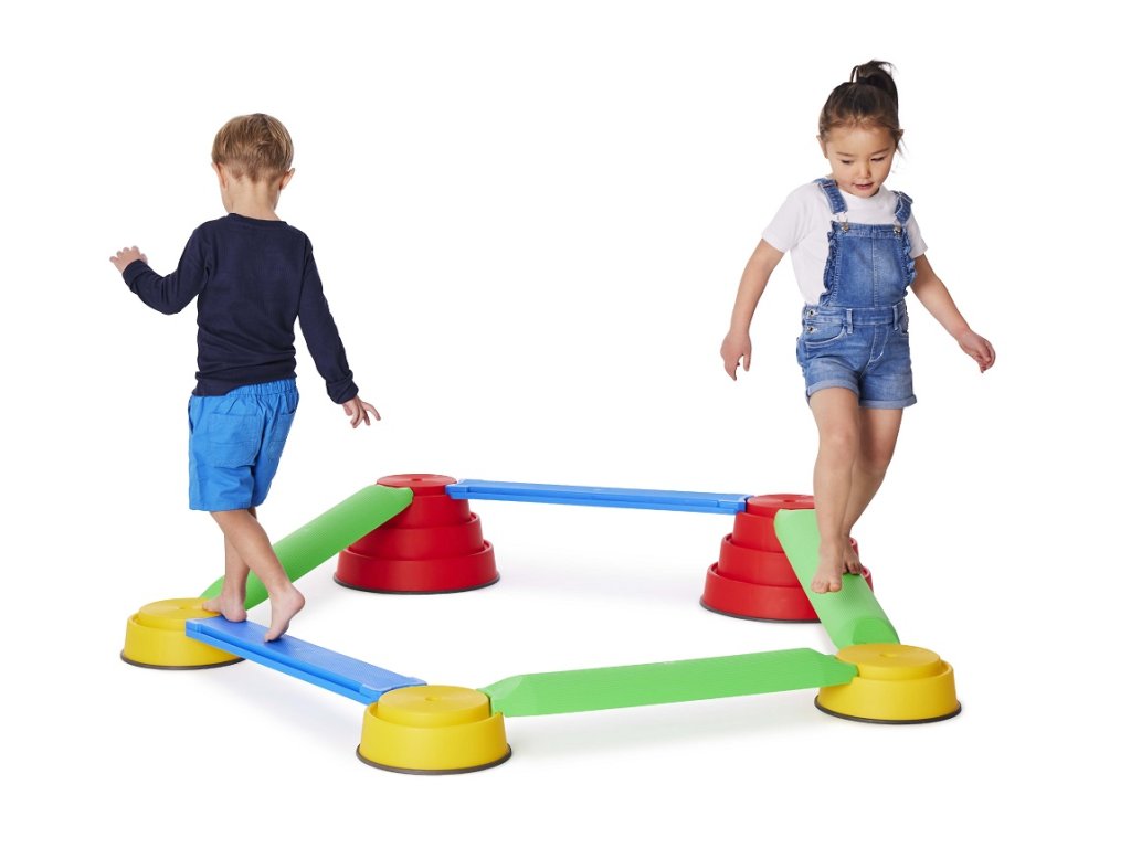 Balanční dráha pro děti i dospělé z kolekce Build N' Balance® od značky Gonge je ideální pomůckou pro rozvoj motoriky, koordinace a rovnováhy. Variabilní sestava umožňuje postavit různě obtížné překážkové dráhy a přizpůsobit je věku i schopnostem uživatelů.