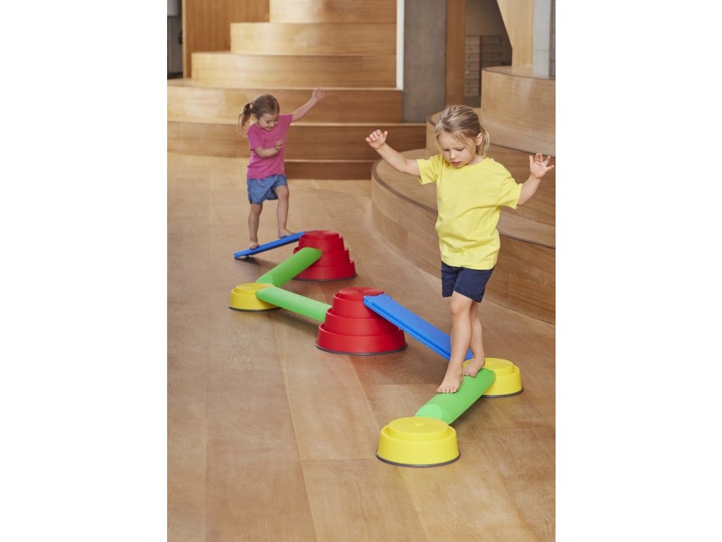 Tato balanční dráha je skvělou kombinací hry a tréninku. Děti si mohou samy naplánovat vlastní překážkovou dráhu a zábavnou formou rozvíjet své pohybové dovednosti. Díky variabilní konstrukci se hodí pro začátečníky i pokročilé – a využití najde nejen v mateřských a základních školách, ale také v rehabilitaci a volnočasových centrech.