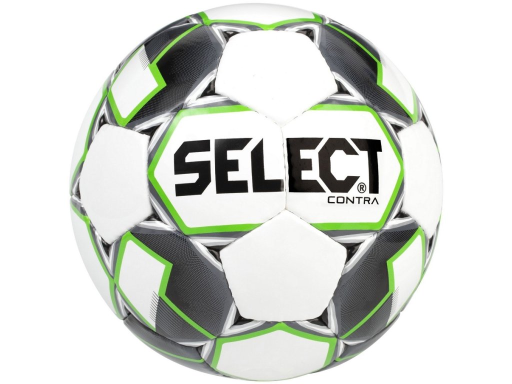 Fotbalový míč Select FB Contra - je tréninkový ručně šitý míč na nejnižší možné váhové hranici v novém designu vyroben z PU syntetické kůže. 5 vrstev a latexová duše pro živější odskok. Dvojí ventilek.