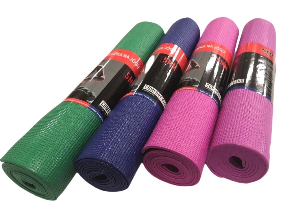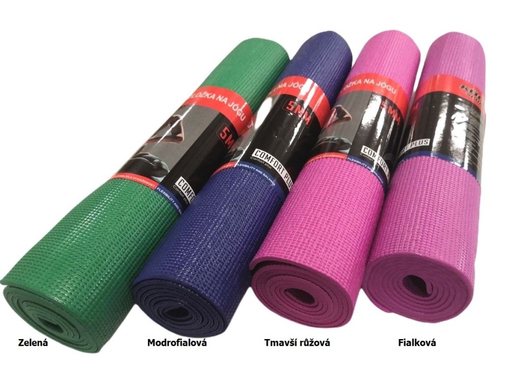 Yoga mat 5 mm je vhodnou cvičební podložkou pro aerobic, jógu, pilates nebo jakékoliv protahovací či posilovací cvičení. Podložka má protiskluzový povrch po obou stranách. Umožňuje tak lepší udržení stability a pohlcuje nárazy. Jóga podložka je lehce omyvatelná a je odolná proti vlhkosti. Je vyrobena z měkkého pěnového materiálu o tloušťce 0,5 cm. Je lehká, ohebná, snadno se stočí do role a proto se velice snadno přenáší a nezabere moc místa.
