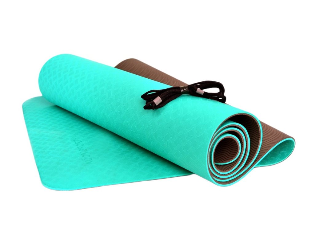 Dvouvrstvá měkká podložka Yoga mat TPE nejvyšší kvality Eco friendly je vhodná na jógu, pilates nebo na jakékoliv protahovací či posilovací cvičení. Podložka na cvičení je vyrobena z trvanlivého, měkkého a na omak příjemného termoplastického elastomeru s protiskluzovým texturovaným povrchem. Tloušťka podložky 6 mm zaručí maximální komfort při cvičení na jakémkoliv povrchu. Jóga podložka je lehká, skladná, snadno se přenáší a má univerzální použití. Je odolná proti vlhkosti a odolná proti chladu. Podložka na jógu TPE neobsahuje žádné škodlivé chemikálie např. latex, ftaláty, těžké kovy nebo PVC.