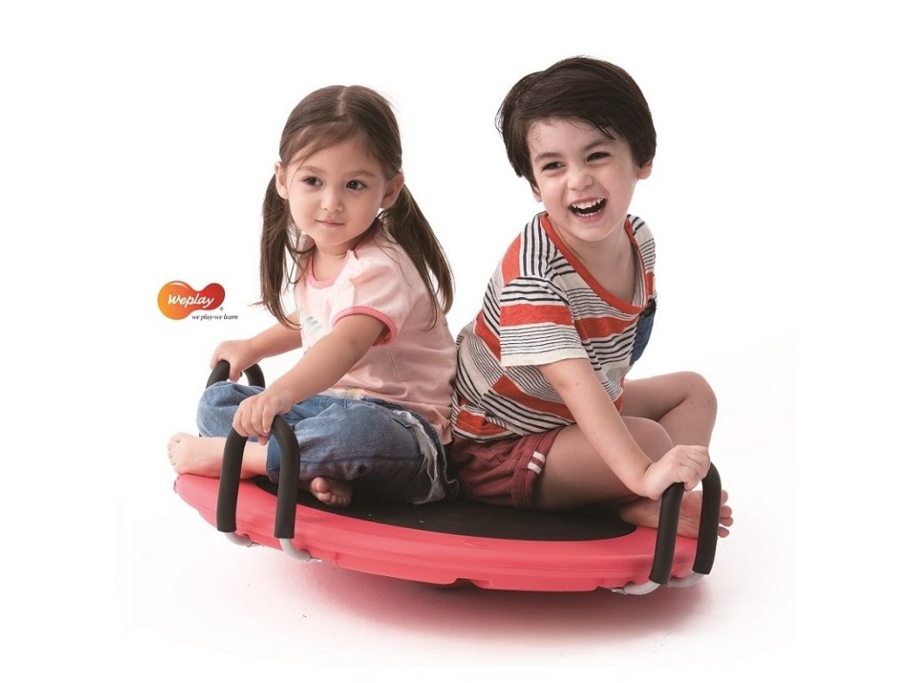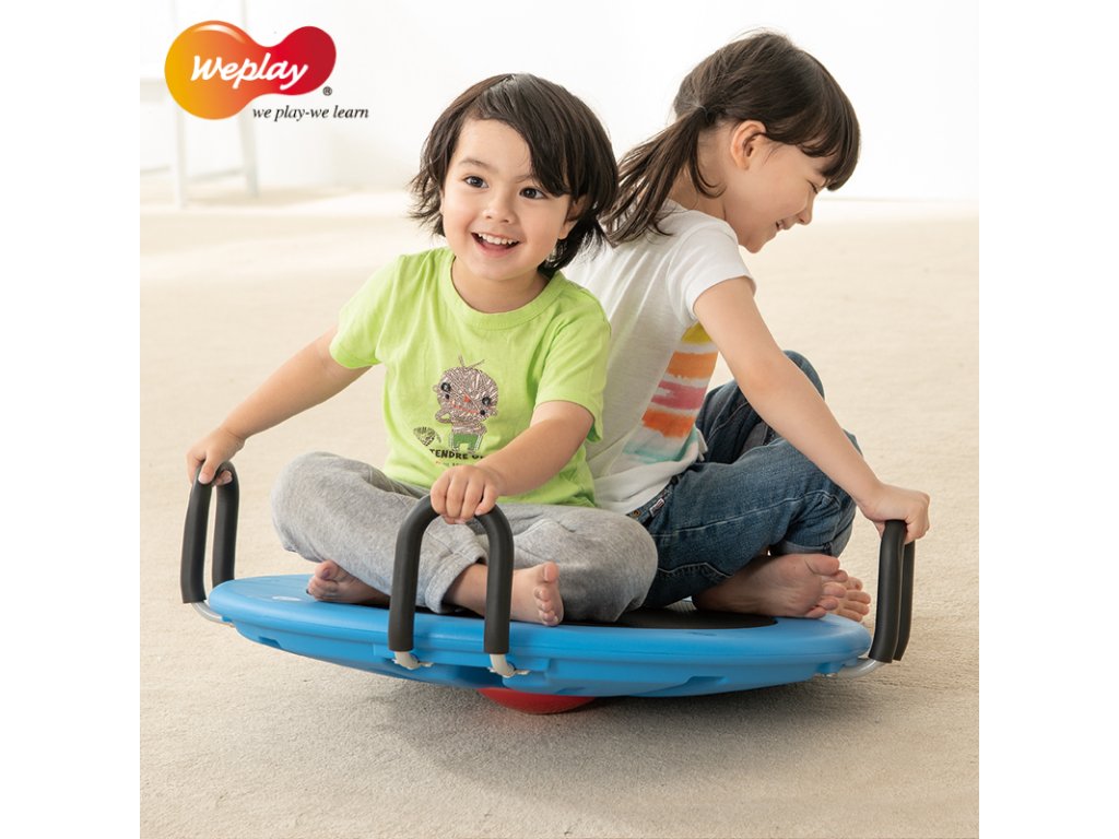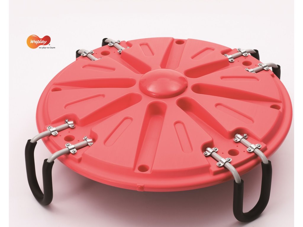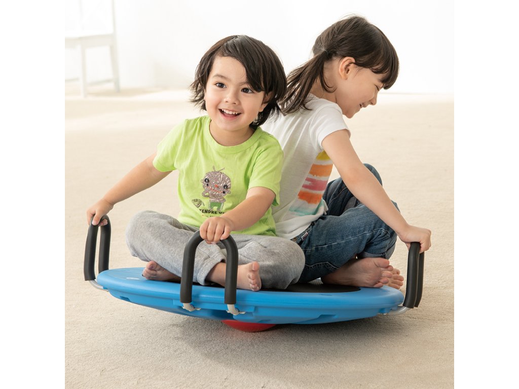 Rotační deska L - jedno nebo dvě děti mohou sedět na balanční desce s rukama na rukojeti. Jednoduchý ruční manévr při otáčení rotační desky pomáhá stimulovat vývoj mozkové kůry. Pohyb vychází z pasu a ramen. Velká otočná deska má velice pozitivní vliv na rozvoj koordinace nohou i rukou a rozvoj stability. Balanční deska má protiskluzový povrch a je vyrobena z vysoce kvalitních materiálů.