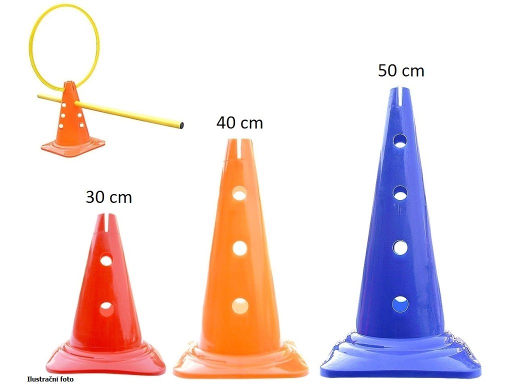 Velmi kvalitní děrovaný vymezovací plastový kužel v oranžové barvě. Používá se jako pomůcka pro vyznačení dráhy, hrací plochy, k vymezení prostoru, branky apod. Záleží pouze na Vás jakou si vytvoříte sestavu pro koordinační cvičení, pro různé didaktické hry nebo slalomovou dráhu pro Agility.