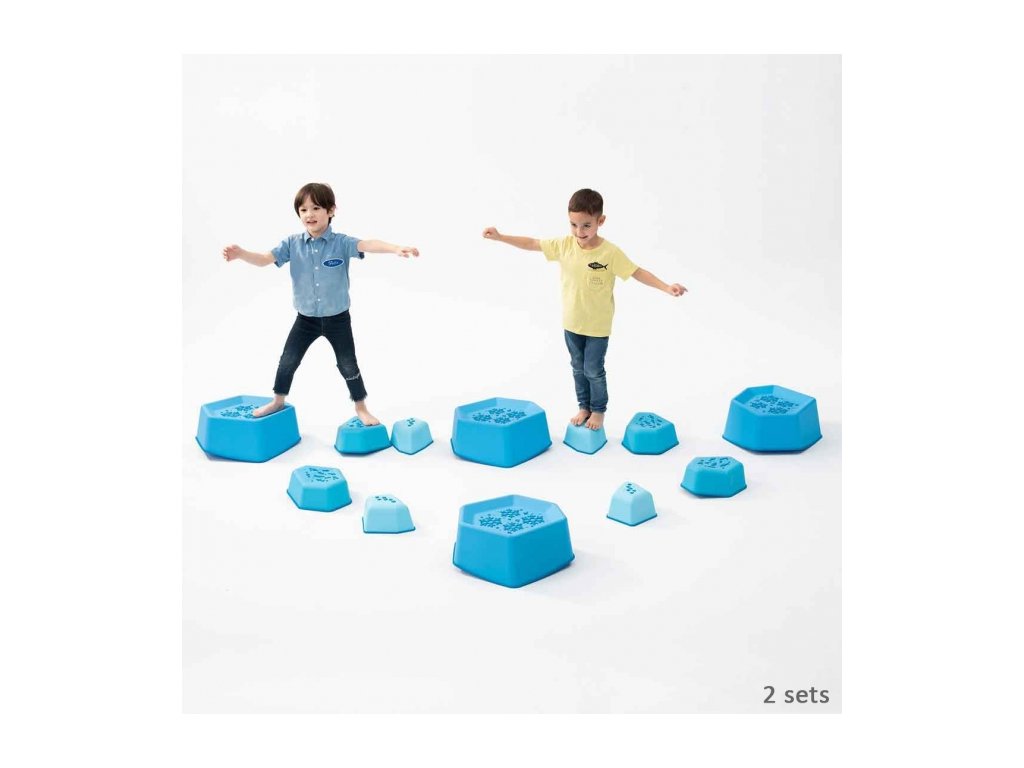 Stejně jako na skutečných ledových krách plovoucích ve vodě se může úroveň obtížnosti balancování lišit, protože každý krok je výzvou a podporuje smysl pro rovnováhu a kontrolu těla. Nášlapné kameny lze skládat do sebe, aby se ušetřilo místo.