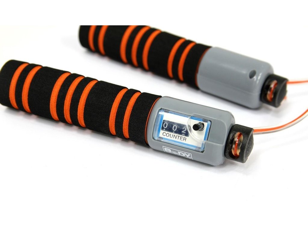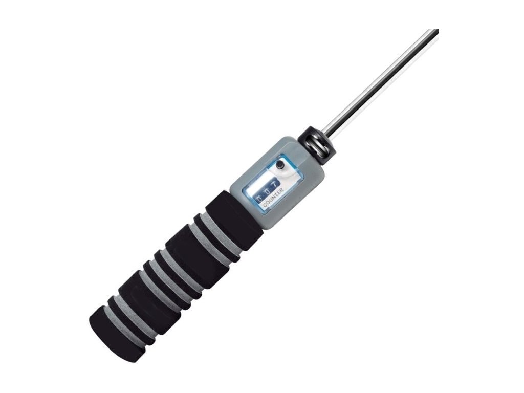 Kvalitní švihadlo s vestavěným mechanickým počítadlem významně zlepšuje běžné cvičení se švihadlem. Rukojeti jsou lehké a plastové s měkkými pěnovými úchopy. Švihadlo má možnost nastavení délky pomocí provlečení lanka v otočné špičce madla.