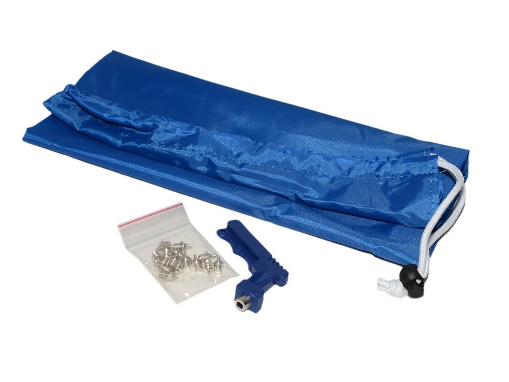 - Součástí balení je zatahovací vak, náhradní hřeby a klíč